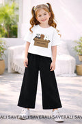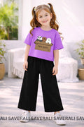 Made from soft, breathable cotton fabric, this outfit is perfect for daily wear, outings, and playtime. The cartoon print T-shirt adds a fun look, while the wide-leg flapper pants provide comfort and free movement all day long.